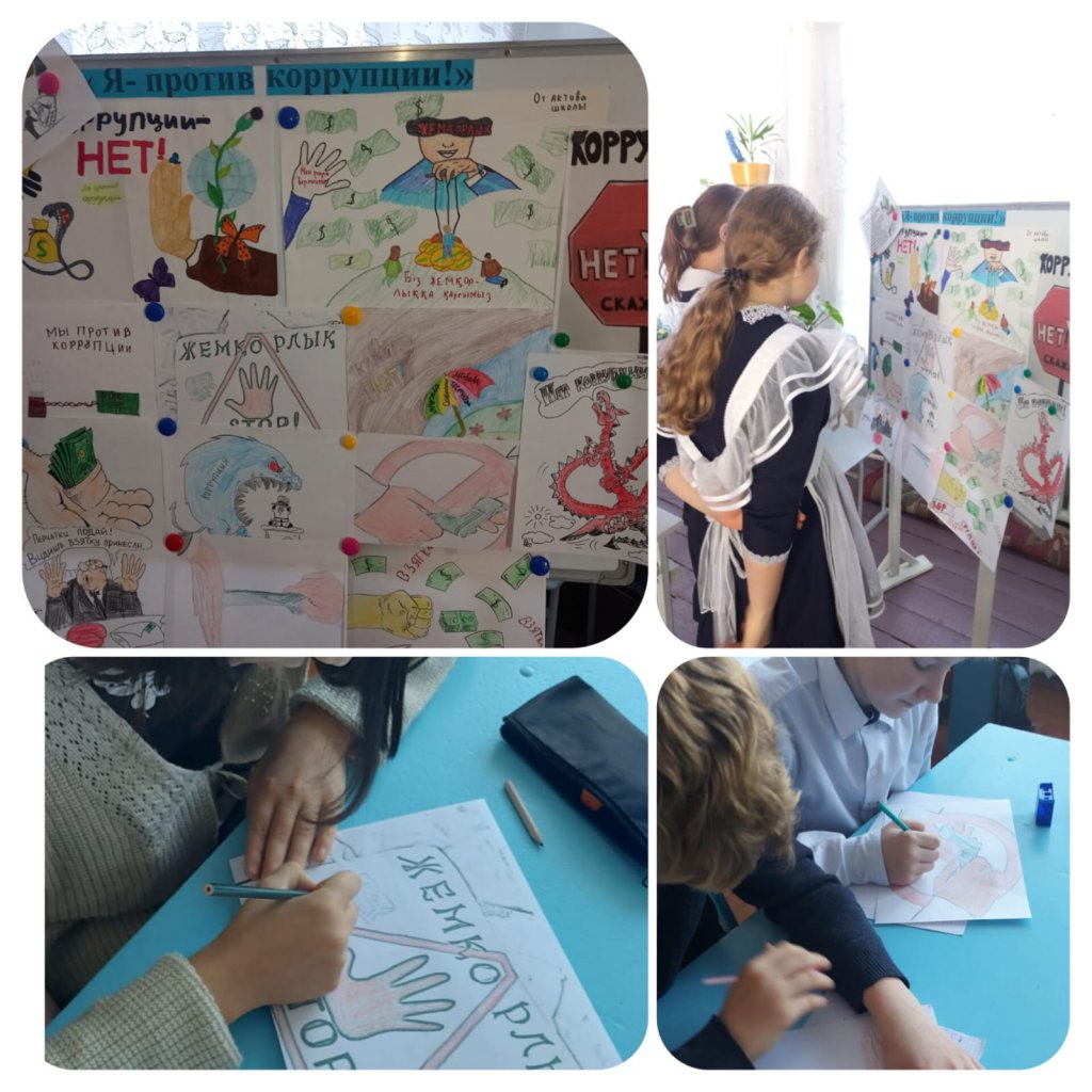 Бүгін, 19 қарашадағы жоспар бойынша, «Адал ұрпақ» клубының мүшелерімен бірлесіп сыбайлас жемқорлықтың алдын алу тақырыбында ақпараттық стенд безендірілді. Стендке орта буын оқушылары дайындаған «Мен сыбайлас жемқорлыққа қарсымын» атты суреттер орналастырылды. Бұл жұмыс оқушылардың азаматтық ұстанымын қалыптастыруға және олардың құқықтық мәдениетін арттыруға ықпал етті. Тәлемгер: Шабатина А.А