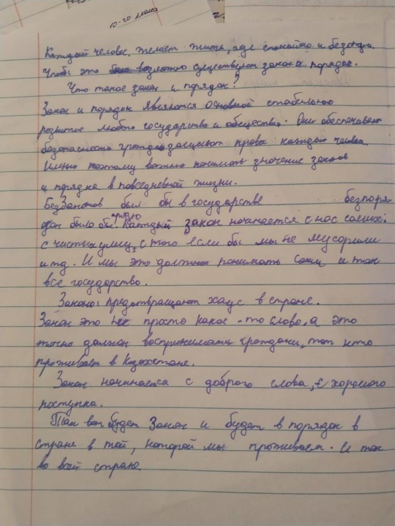 «Полиция және балалар – қауіпсіздік үшін бірге» науқаны аясында (2025 жылғы 20 қарашадағы Дүниежүзілік балалар күніне арналған) мектебіміздің 7-11 сынып оқушылары «Полиция және балалар – қауіпсіздік үшін бірге» тақырыбында бірлескен эссе жазу жаттығуына қатысты. Бұл іс-шараның мақсаты оқушылардың құқықтық білімдерін нығайту және құқық қорғау органдарының және қауіпсіздікті қамтамасыз етудің маңыздылығын түсіндіру болды. Үздік жұмыстар: Фальман Ю., Ахметжанова Д., Бугакова В.