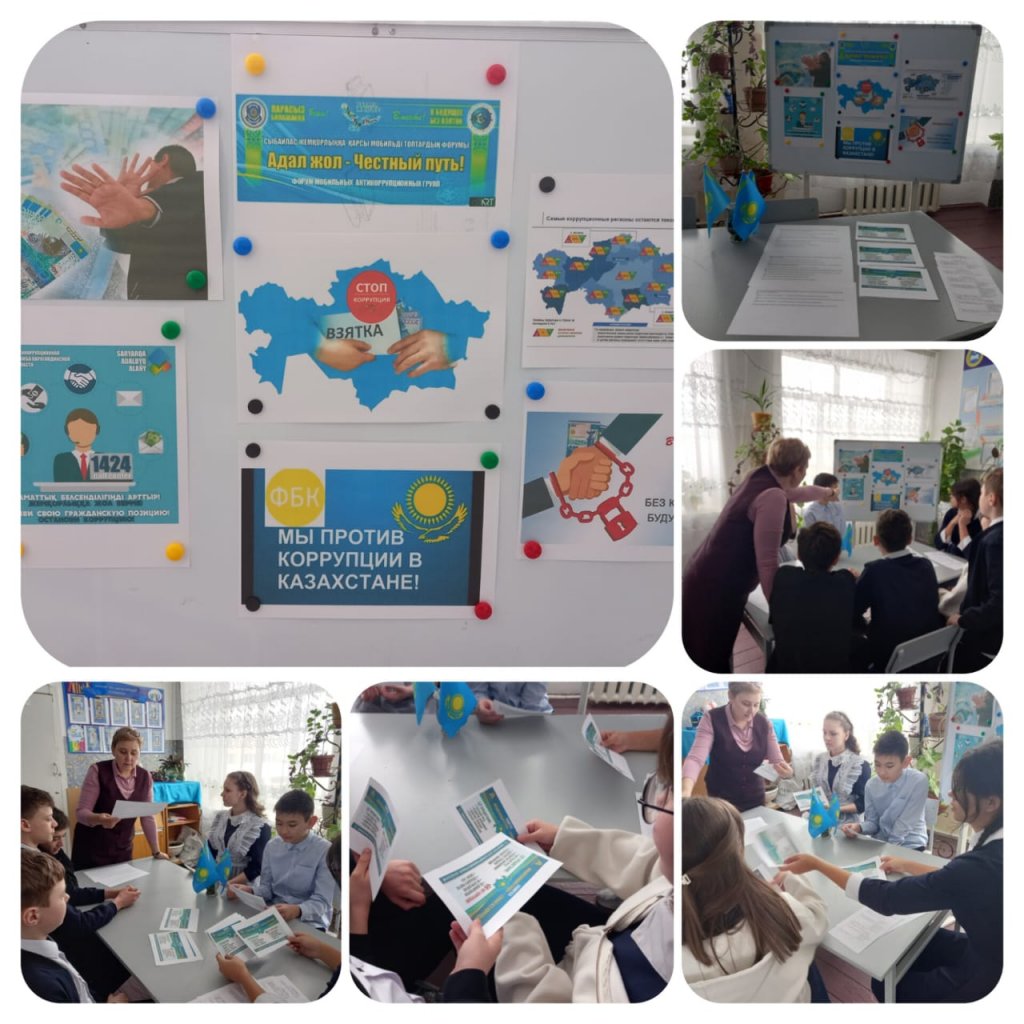 03.02.26 ж. Мектеп парламенті тарапынан «Сыбайлас жемқорлықсыз ел — өркендеген ел» атты сыбайлас жемқорлыққа қарсы акция өткізілді. Іс-шара барысында ақпараттық жадынамалар таратылып, сыбайлас жемқорлыққа қарсы бағыттағы ақпараттық стенд безендірілді.