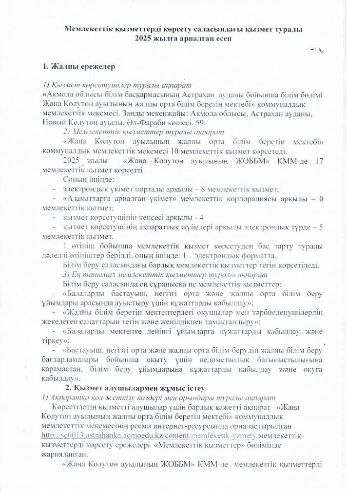 Мемлекеттік қызметтерді көрсету саласындағы қызмет туралы 2025 жылға арналған есеп