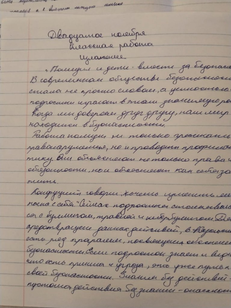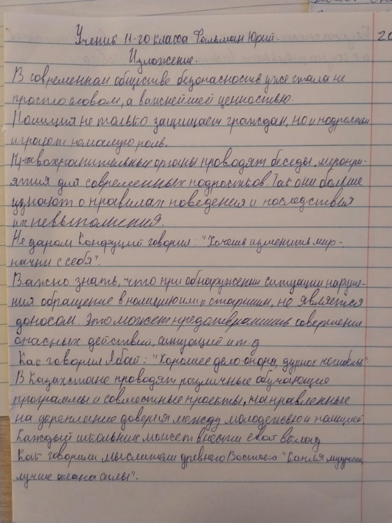 «Полиция және балалар – қауіпсіздік үшін бірге» науқаны аясында (2025 жылғы 20 қарашадағы Дүниежүзілік балалар күніне арналған) мектебіміздің 7-11 сынып оқушылары «Полиция және балалар – қауіпсіздік үшін бірге» тақырыбында бірлескен эссе жазу жаттығуына қатысты.